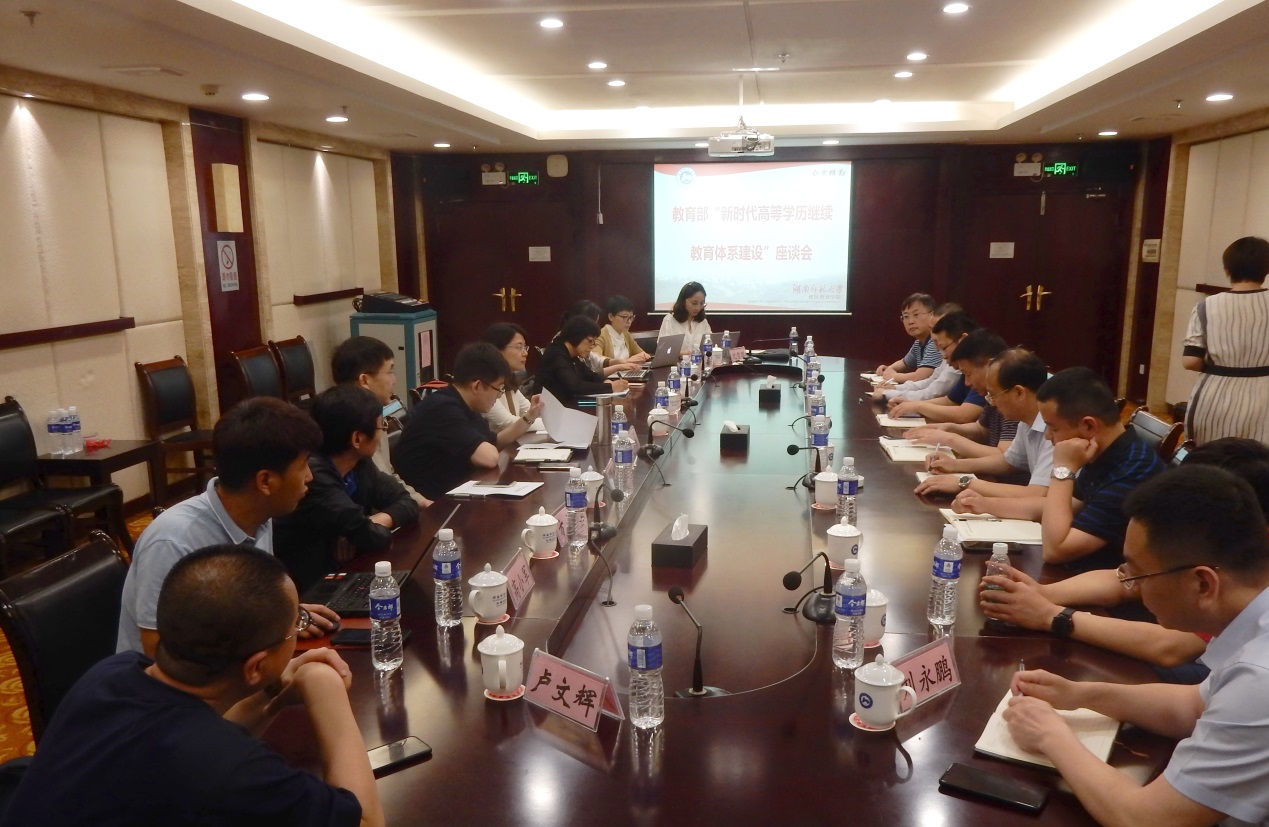 5月10日上午,教育部“新时代高等学历继续教育体系建设”课题调研座谈会在我校红楼召开。教育部职成司高等继续教育处、教育部考试中心自考综合处、北京市教育考试院、湖北省教育考试院、华东师范大学成人教育处、国家开放大学教务部、浙江开放大学的相关负责人组成的调研组和湖南省教育厅高教处、职成处的相关同志出席会议。会议由我校继续教育学院副院长吴跃飞主持。