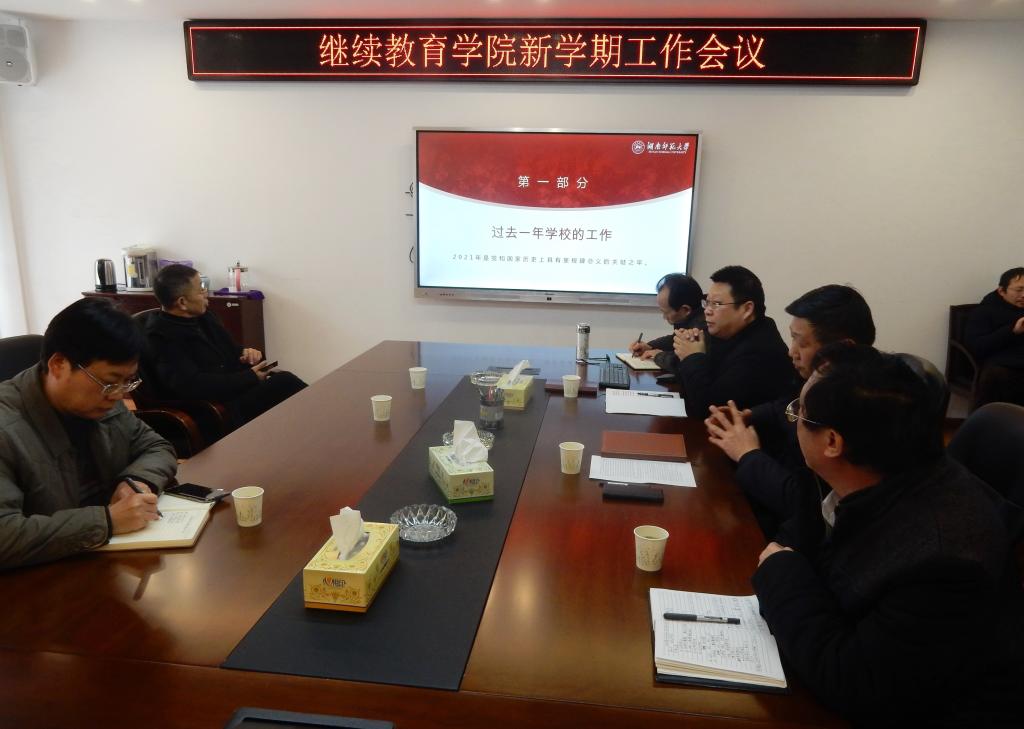 2月21日下午,继续教育学院在院会议室召开新学期工作会议。院长钟荣华主持会议。学院全体教职工参加了会议。
