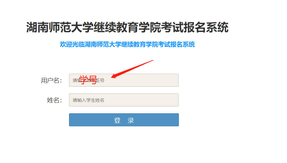 2. 输入学号(虽然界面显示为准考证,但经修改后用学号为登陆账号)及姓名。输入框内注意查看不能有空格。