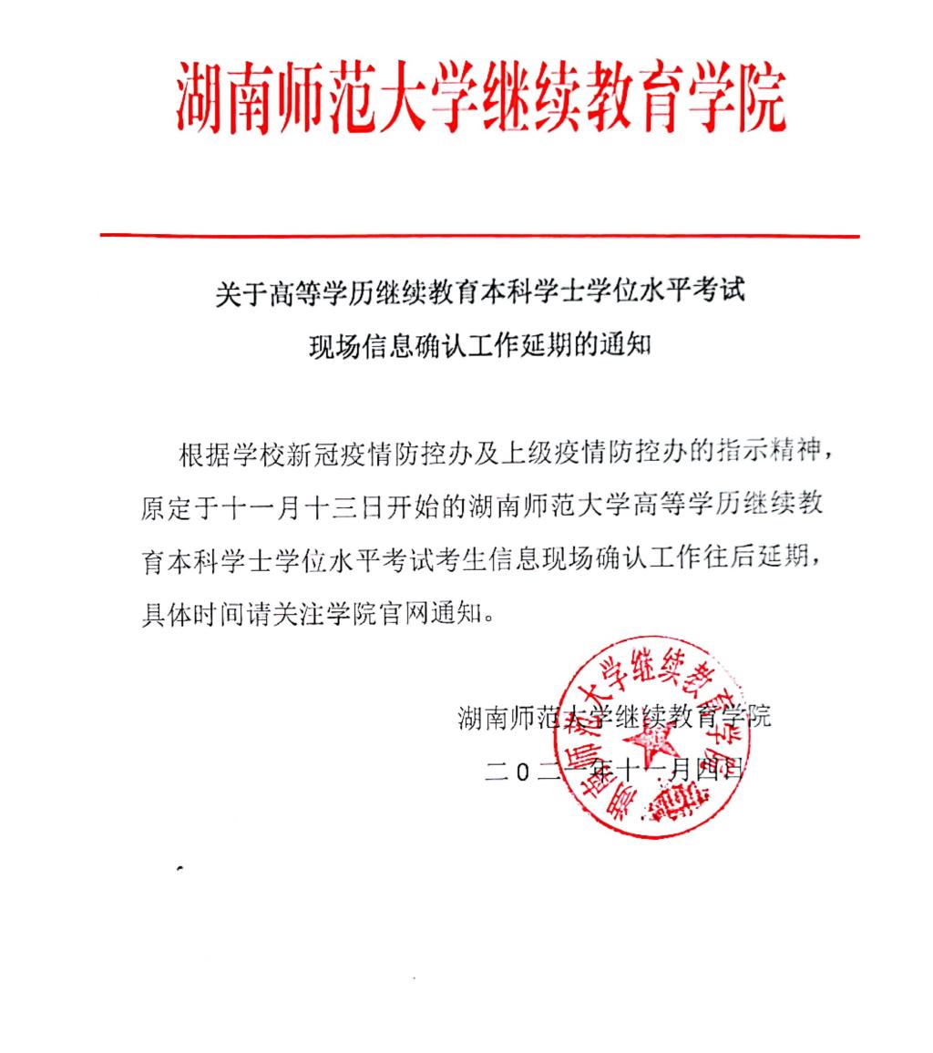 关于学历继续教育本科学士学位水平考试现场信息确认工作延期的通知