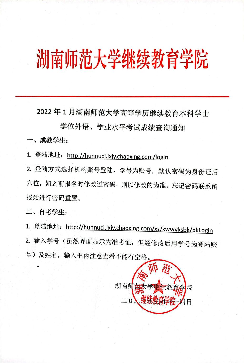 2022年1月太阳成集团tyc高等学历继续教育本科学士学位外语、学业水平考试成绩查询通知