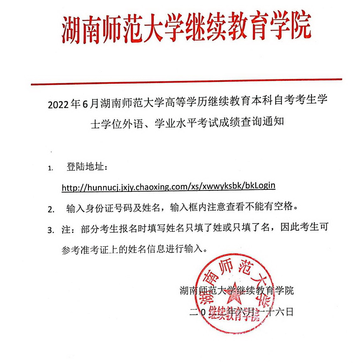 2022年6月太阳成集团tyc高等学历继续教育本科自考生学士学位外语、学业水平考试成绩查询通知