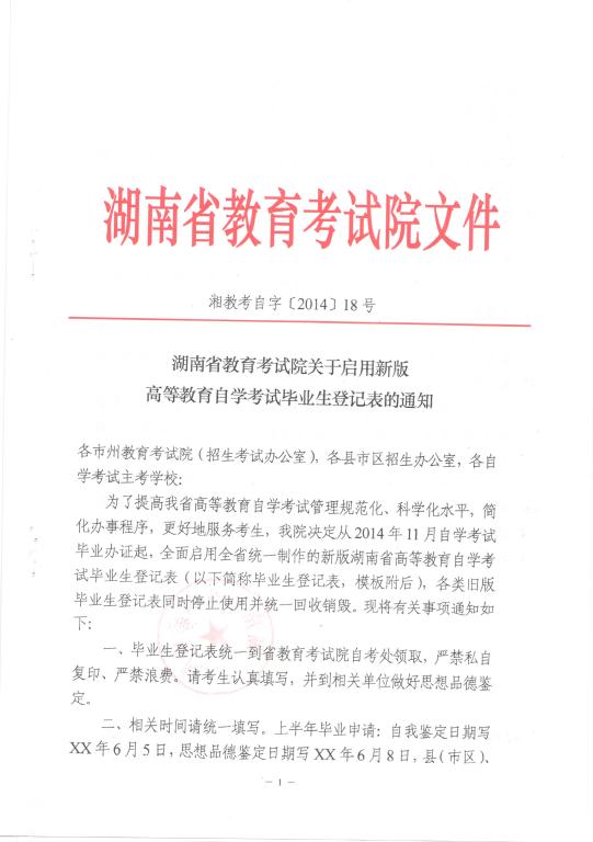 关于启用新版湖南省高等教育自学考试毕业生登记表的通知湘教考自字〔2014〕18号-2.jpg
