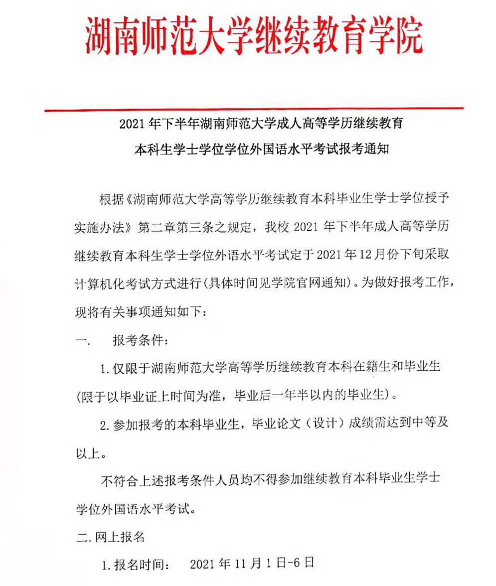 2021年下半年太阳成集团tyc成人高等学历继续教育本科生学士学位外国语水平考试报考通知
