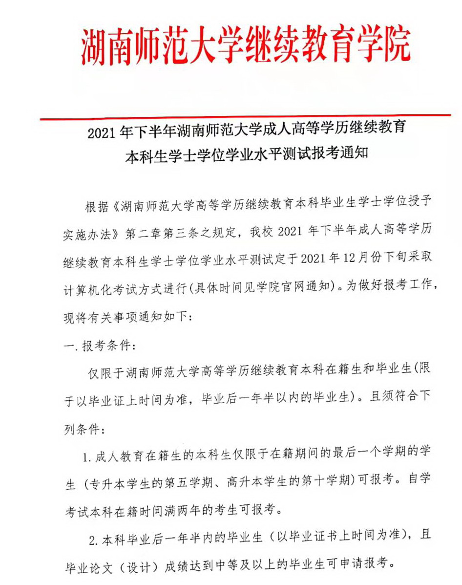 2021年下半年太阳成集团tyc成人高等学历继续教育本科生学士学位学业水平测试报考通知
