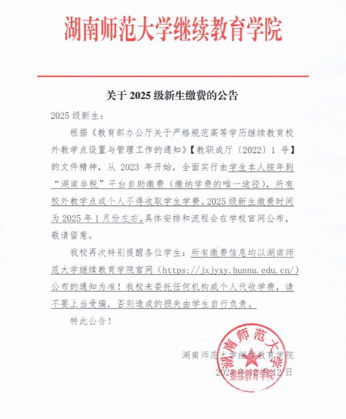 关于2025级新生缴费的公告