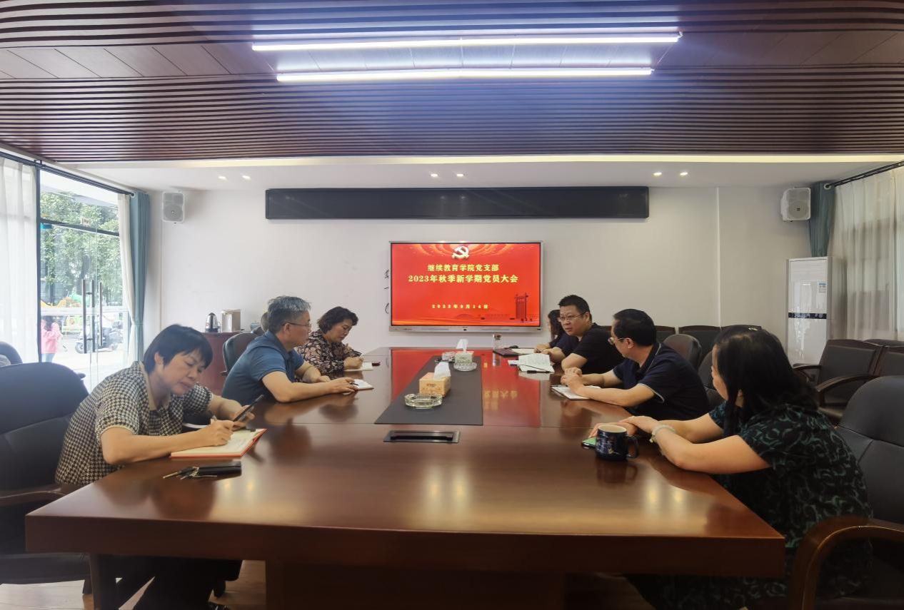 2023年9月14日上午,继续教育学院党支部在一楼会议室召开了2023年秋季新学期党员大会。会议由支部书记吴跃飞主持,全体党员参加了会议。