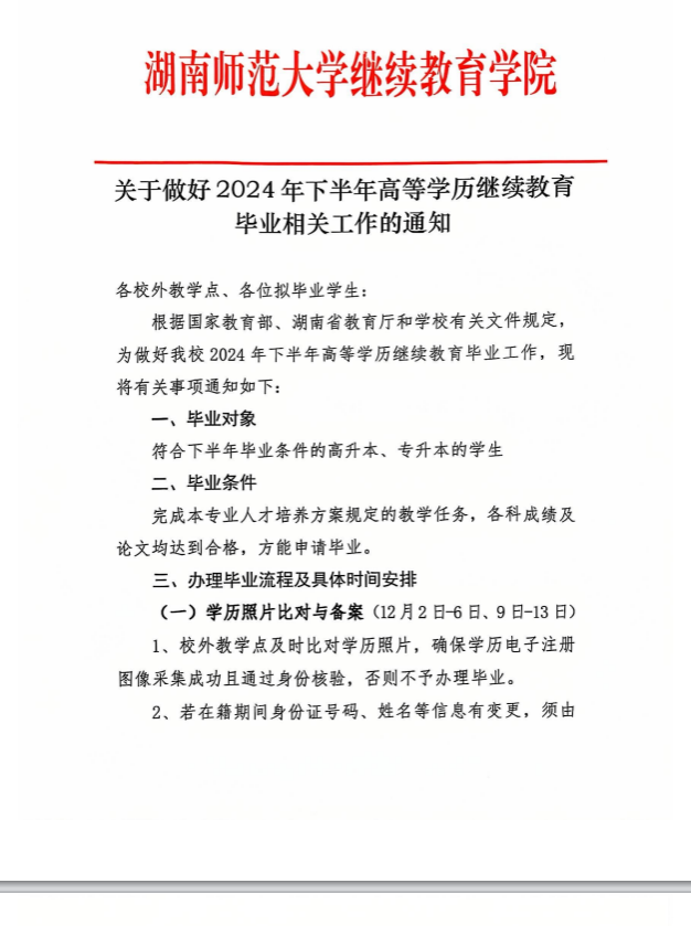 关于做好2024年下半年高等学历继续教育毕业申请的通知