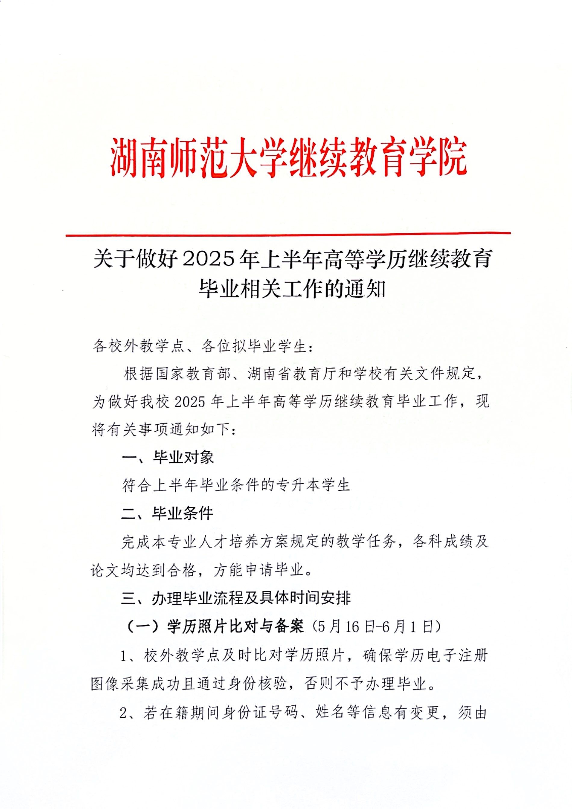 关于做好2025年上半年高等学历继续教育毕业相关工作的通知
