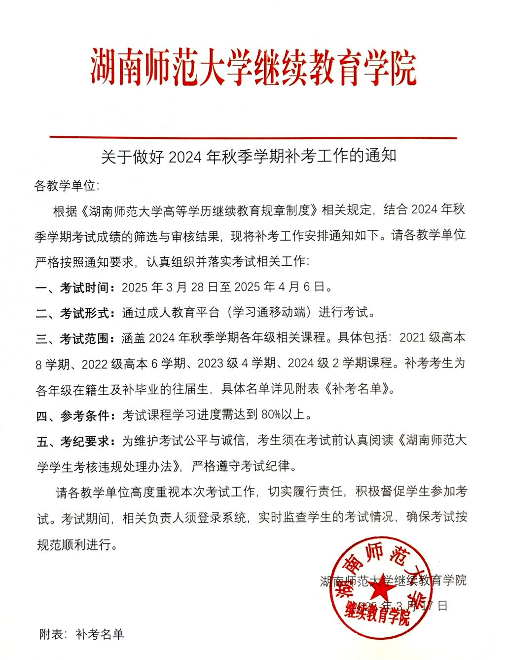 关于2024年秋季学期补考工作的通知