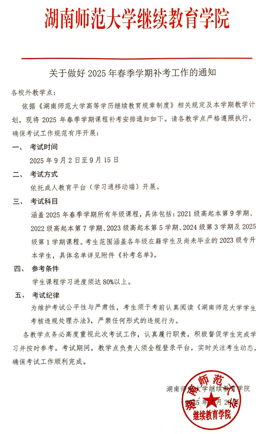 关于2025年春季学期补考工作的通知