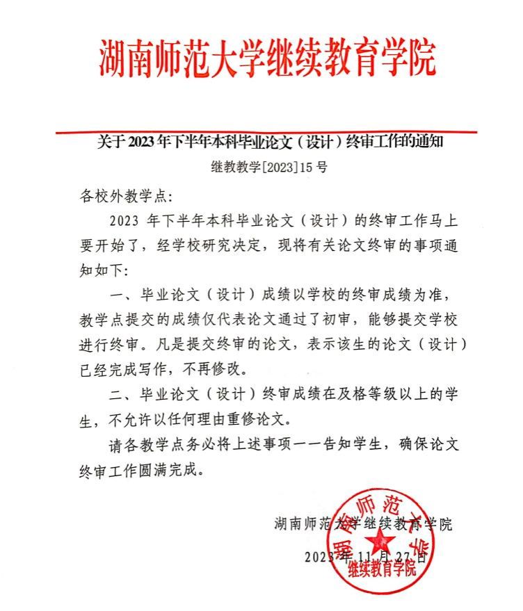 关于2023年下半年本科毕业论文(设计)终审工作的通知