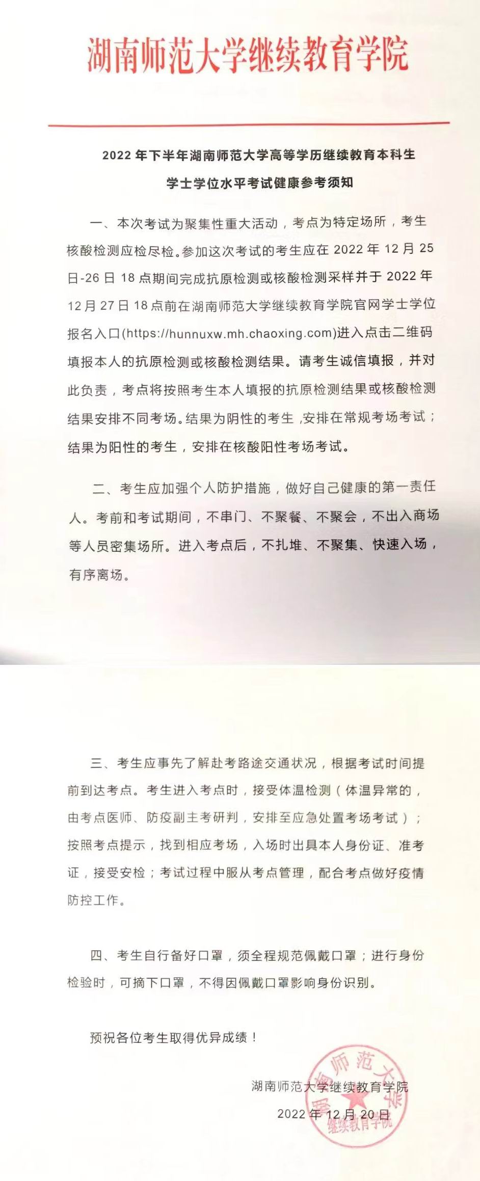 2022年下半年太阳成集团tyc高等学历继续教育本科生学士学位水平考试健康参考须知