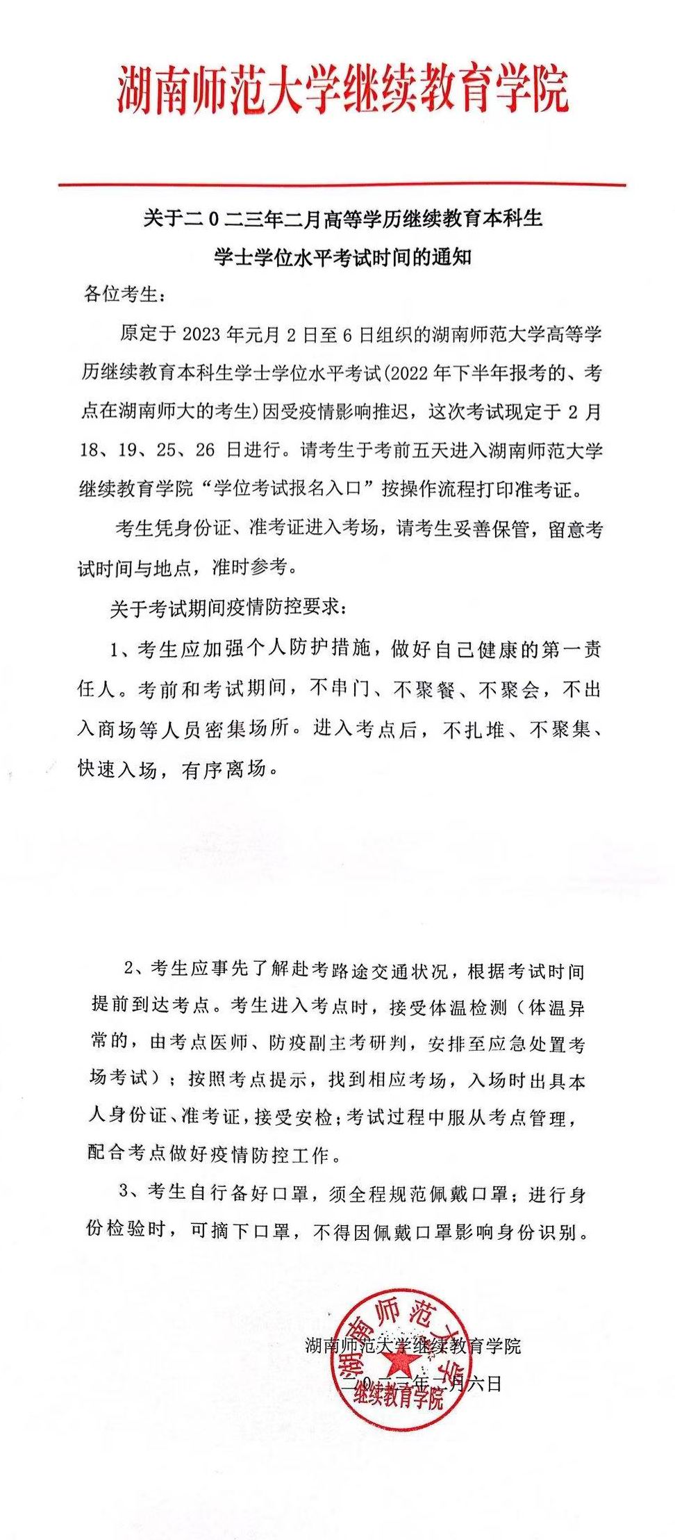 关于二0二三年二月高等学历继续教育本科生学士学位水平考试时间的通知