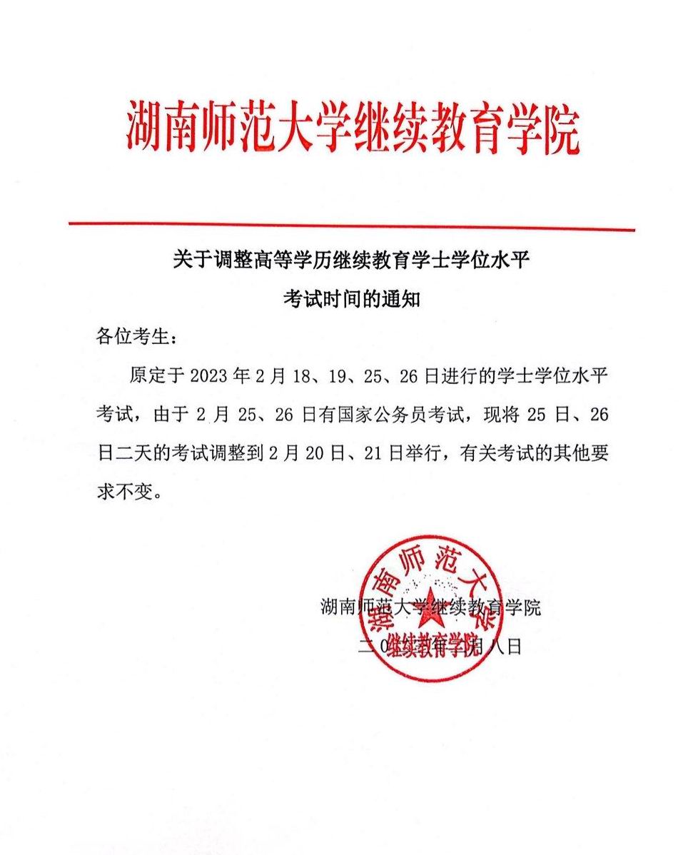 关于调整高等学历继续教育学士学位水平考试时间的通知