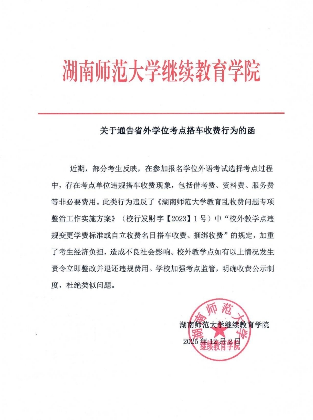 关于通告外省学位考点搭车收费行为的函